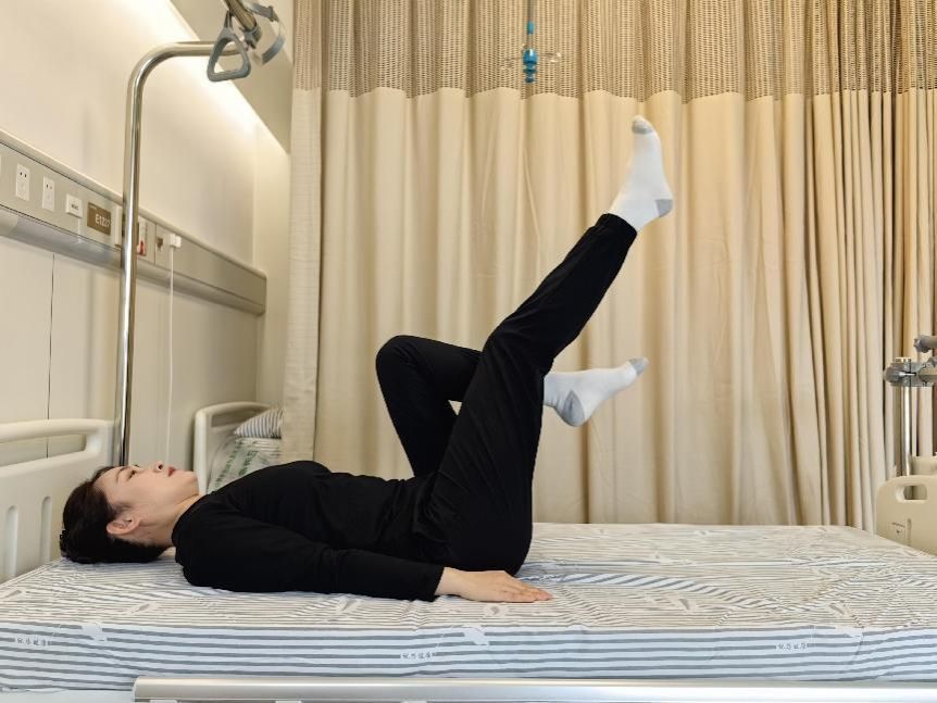 仰卧,双膝伸直,抬起左/右大腿,动作轻松稍快,不引起疼痛为度,维持3-5秒,左右腿交替进行。