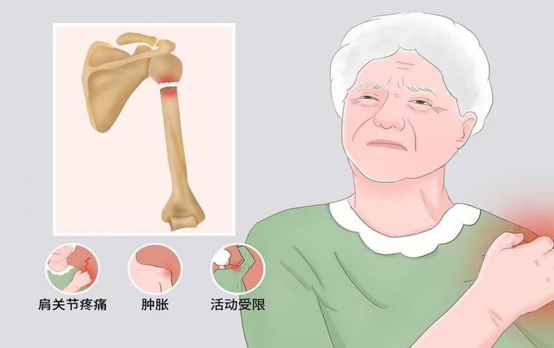 有跌倒外伤史,伤后肩部疼痛、肿胀,活动受限,局部血肿,易与周围软组织粘连。