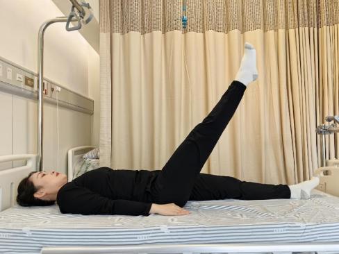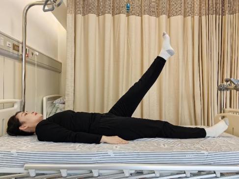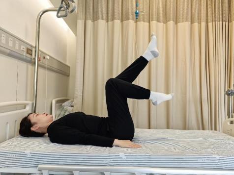 仰卧,双膝伸直,抬起左/右大腿,动作轻松稍快,不引起疼痛为度,维持3-5秒,左右腿交替进行。
