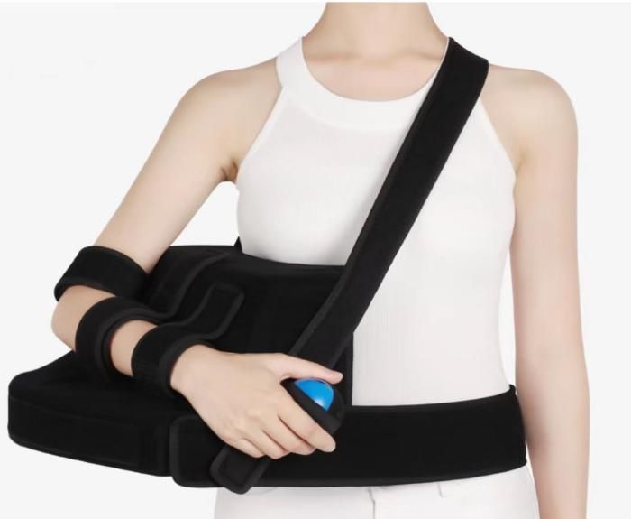 4.功能锻炼:麻醉清醒后即可进行握拳运动,术后第1天可以进行握拳练习及屈肘练习。这时如果您无不适症状,可以带外展固定支具固定患肢,下地适当活动;术后2~7天以做握拳练习及屈肘练习的同时还可以做患肢钟摆运动、被动外展运动等练习,逐渐增大幅度。