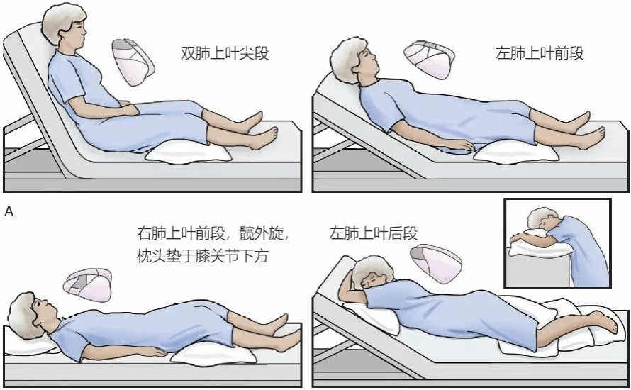 4.清除气道分泌物:包括物理排痰和化痰药物。物理排痰如体位引流、振动排痰、雾化吸入、正压通气、主动呼吸训练等。药物包括黏液溶解药、痰液促排药、抗氧化药等。